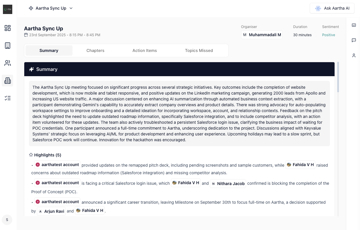 To authenticate this integration for the first time, a user must be a Gong Tech Admin and have Organization admin permissions in Aartha AI