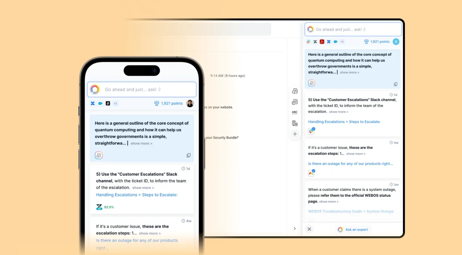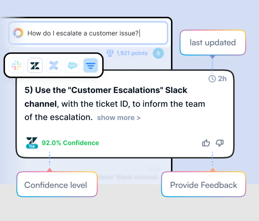 Easily search across all your organization’s channels and software to get the best answer to your question. Ask-AI utilizes state-of-the-art AI and ML models, vector search, and knowledge graphs to surface the most relevant information and documents.