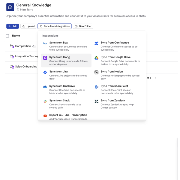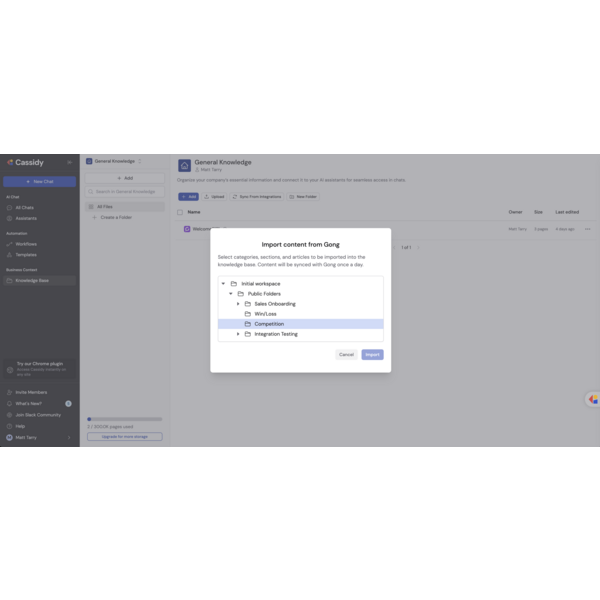 Cassidy seamlessly integrates with your Gong calls and transcripts to automate workflows, surface insights, and enable AI-driven conversations with your company’s data.