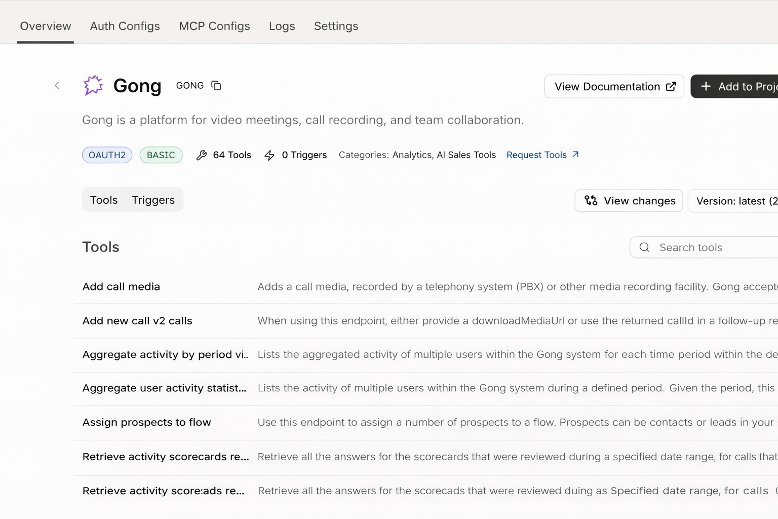 Integrating Composio with Gong enhances your sales workflows by automating data synchronization and providing AI-powered insights. This integration allows you to automate processes, synchronize call metadata, retrieve transcripts, and use Gong's analytics tools within your workflows. With Composio, you can seamlessly connect Gong’s call analytics and engagement features to your CRM, improving sales performance, tracking deals, and optimizing communication strategies.