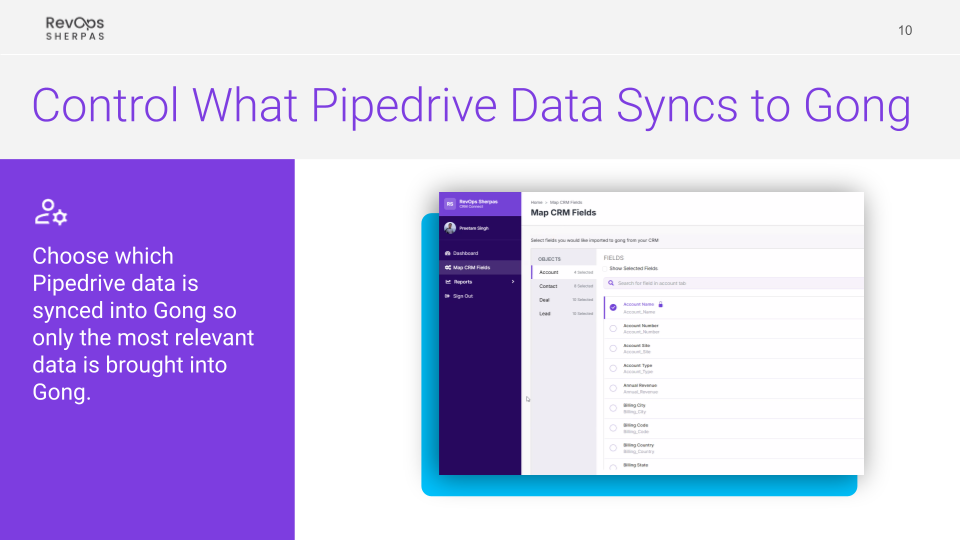 - Selective Data Sync: Choose which Pipedrive fields to bring into Gong so you maintain a clean, focused data model without unnecessary clutter.