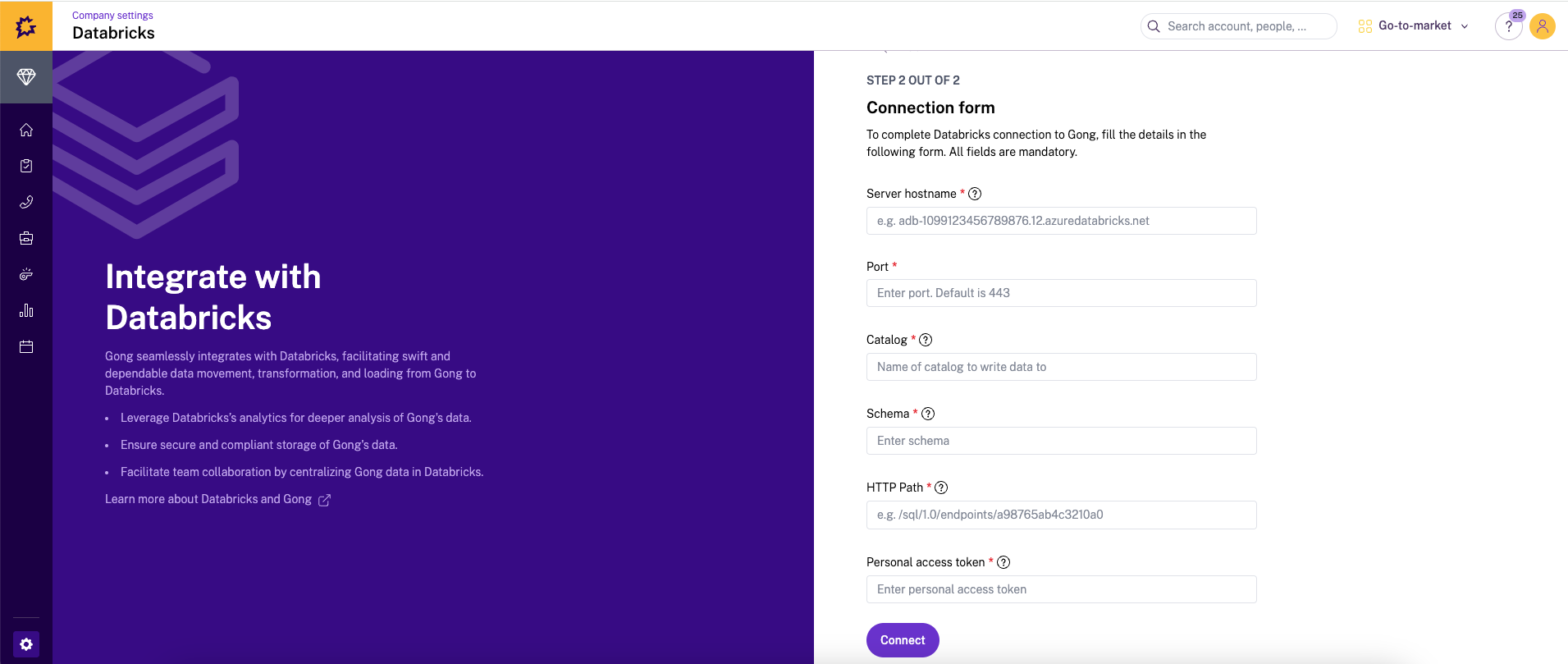 With this integration, users can securely share Gong data in an analytics-ready structure directly to Databricks within minutes and without code.