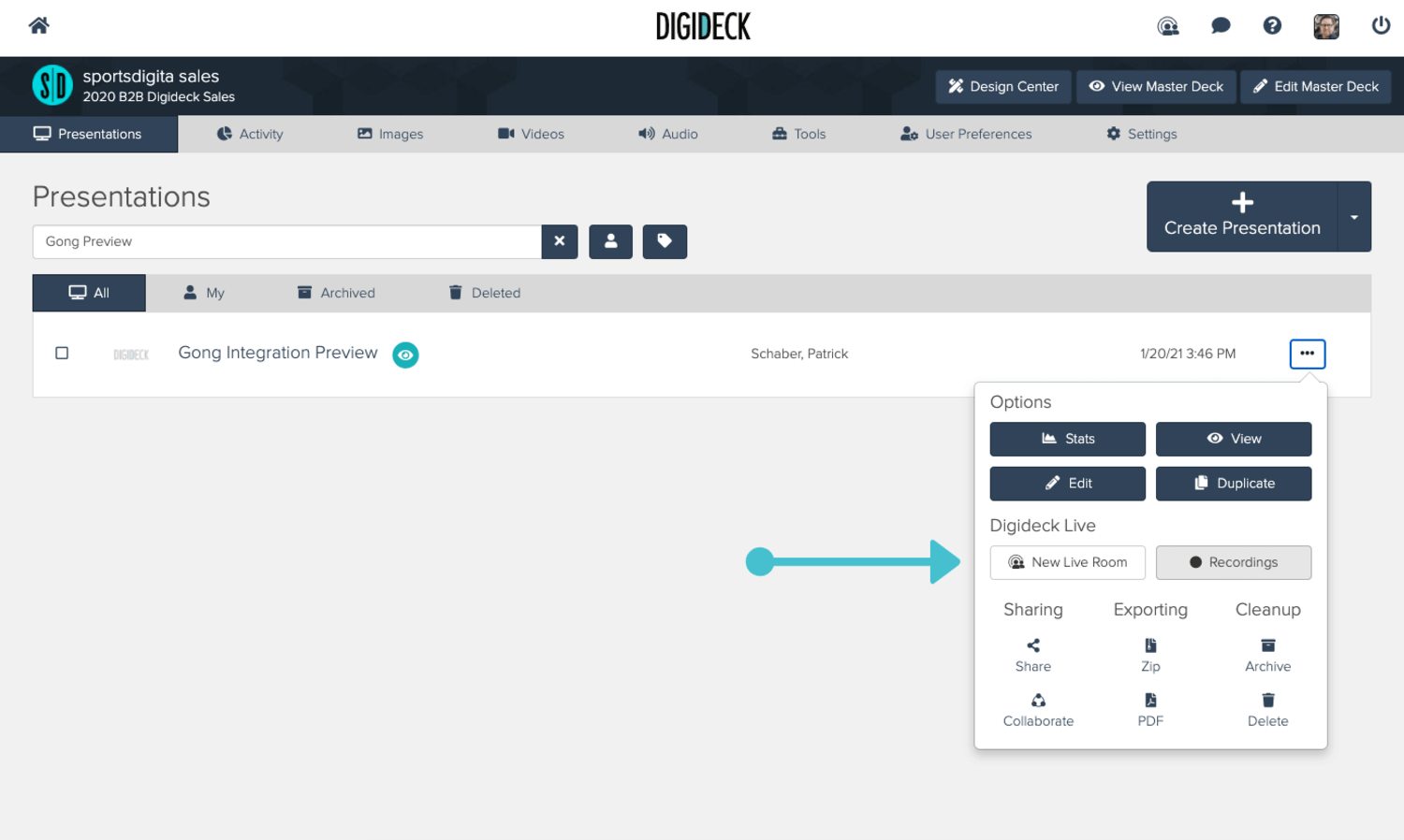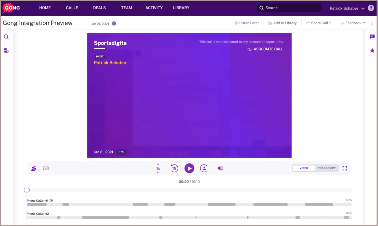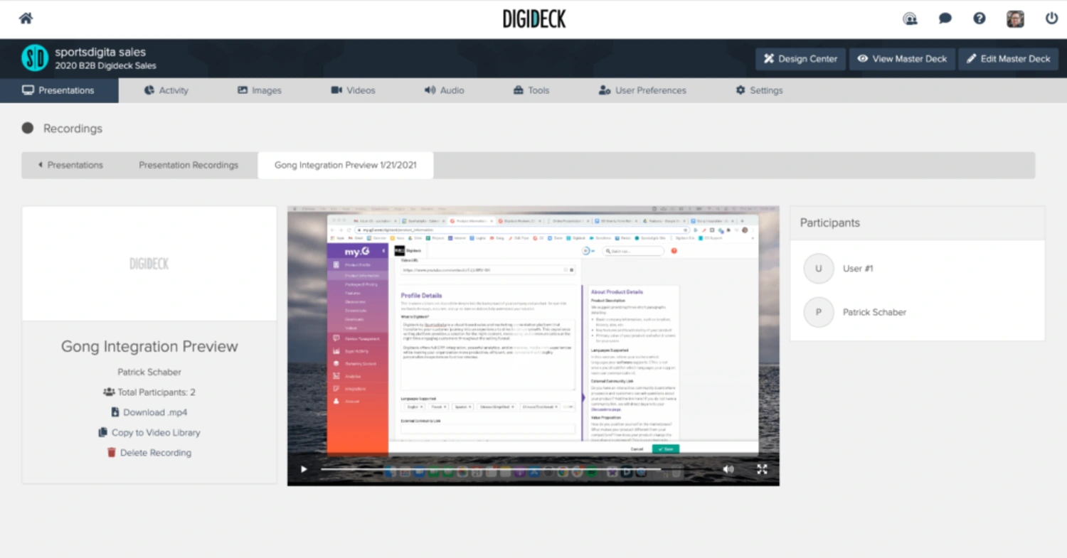 With this integration, Gong automatically imports and transcribes Digideck web conferences.