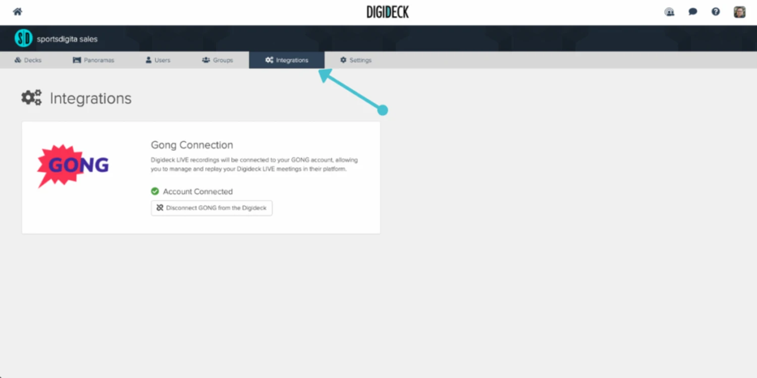 Connect Digideck from the Web Conferencing section under Data Capture on the Gong Company Settings Page.