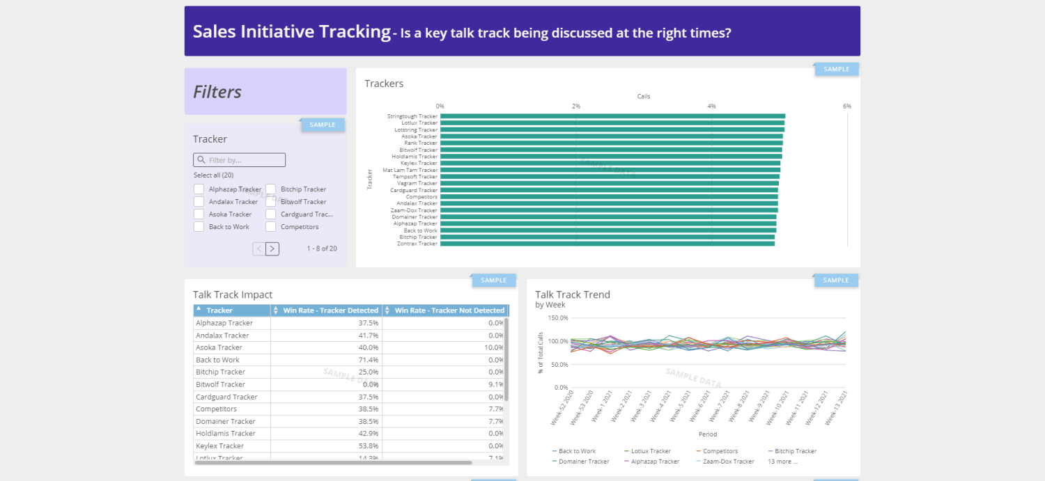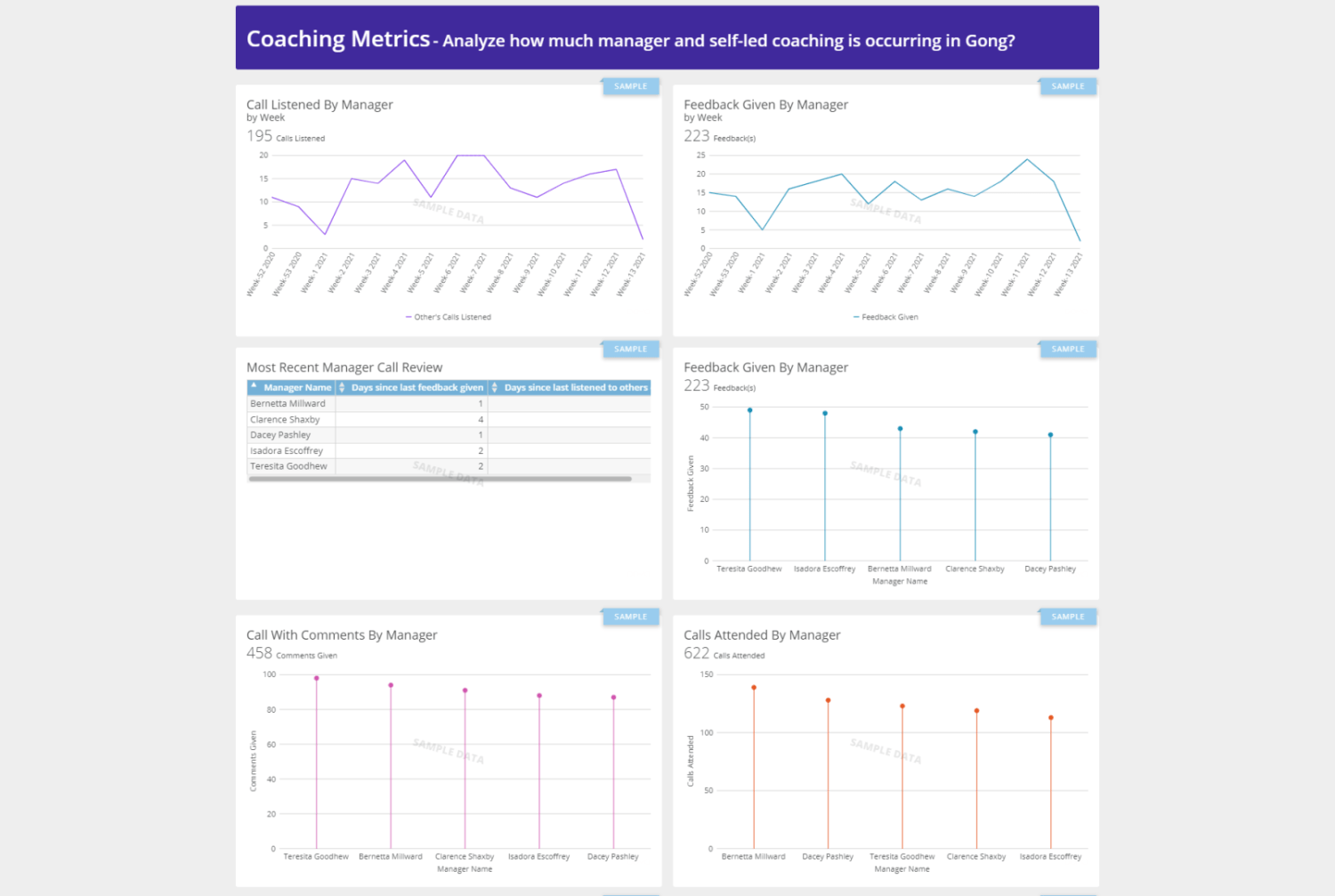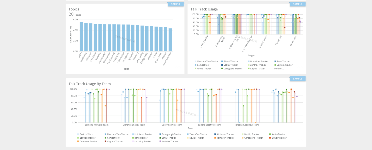 Send Gong data to Domo for a holistic picture of sales process and team performance. Visualize early indicators of success—like how often your sales team uses new messaging—to business outcomes. With this integration, you’ll be able to measure every aspect of initiatives designed to improve customer experience and raise the bottom line.