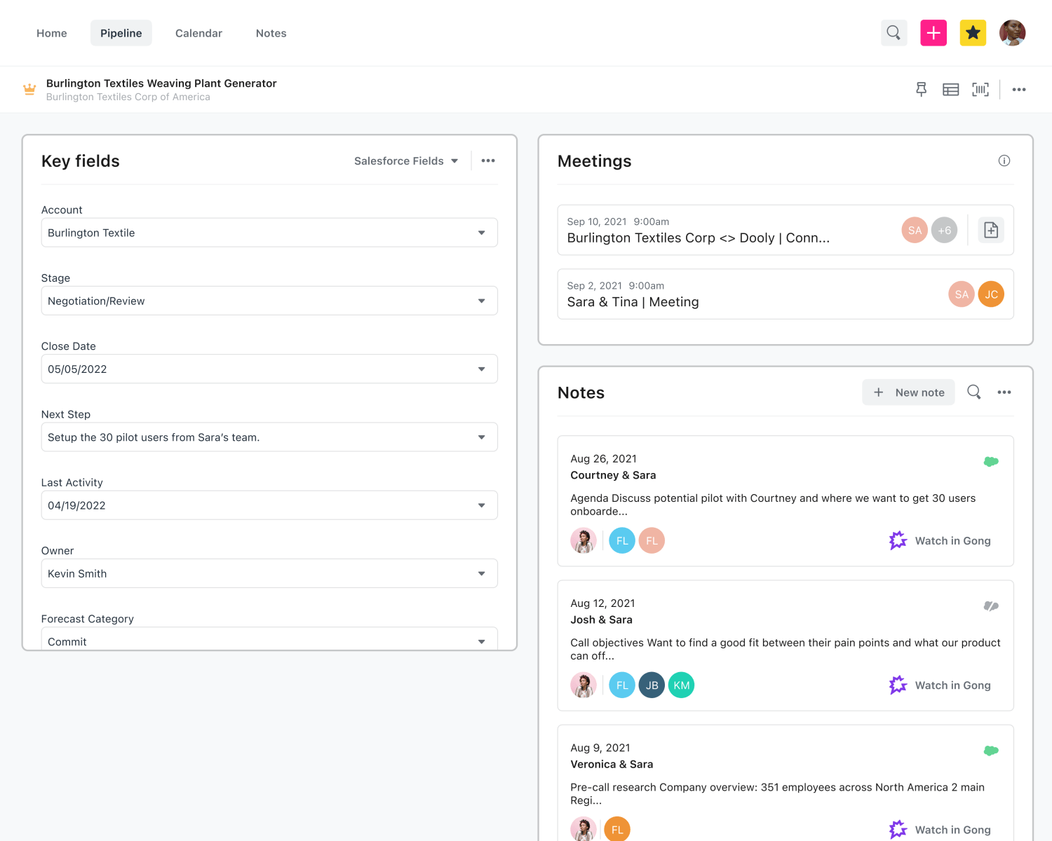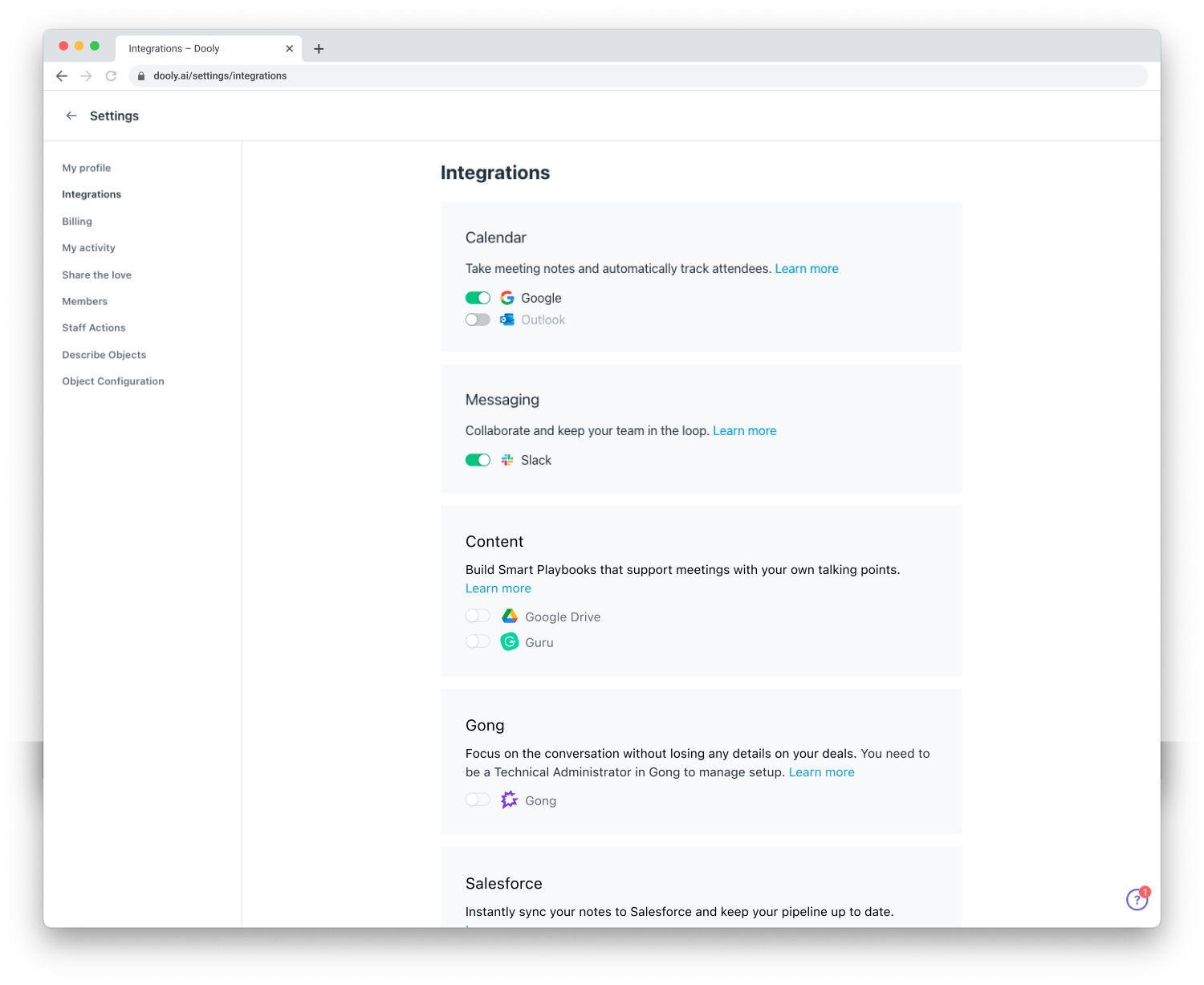 Dooly’s integration with Gong brings together sellers' call recordings and notes into one place so they can capture the full story of a deal.