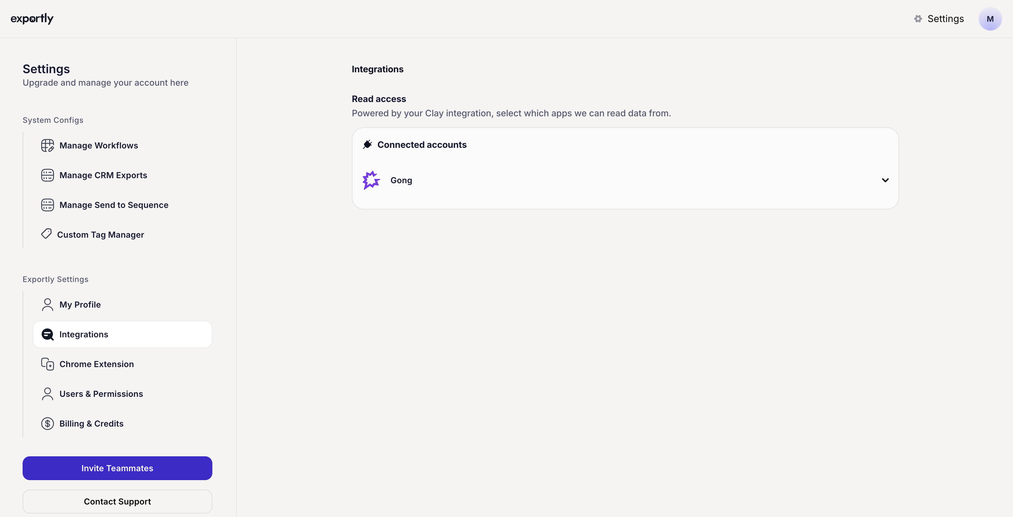 Once you connect Exportly to Gong Engage you will be able to send Prospects to your selected Flow via Clay.