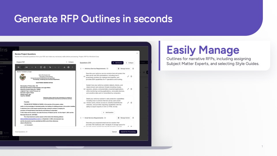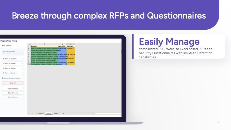 Implement Iris and achieve up to a 90% reduction in time spent on RFPs and Security Questionnaires within weeks of onboarding.