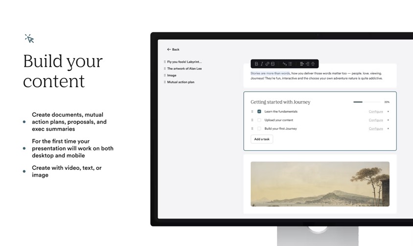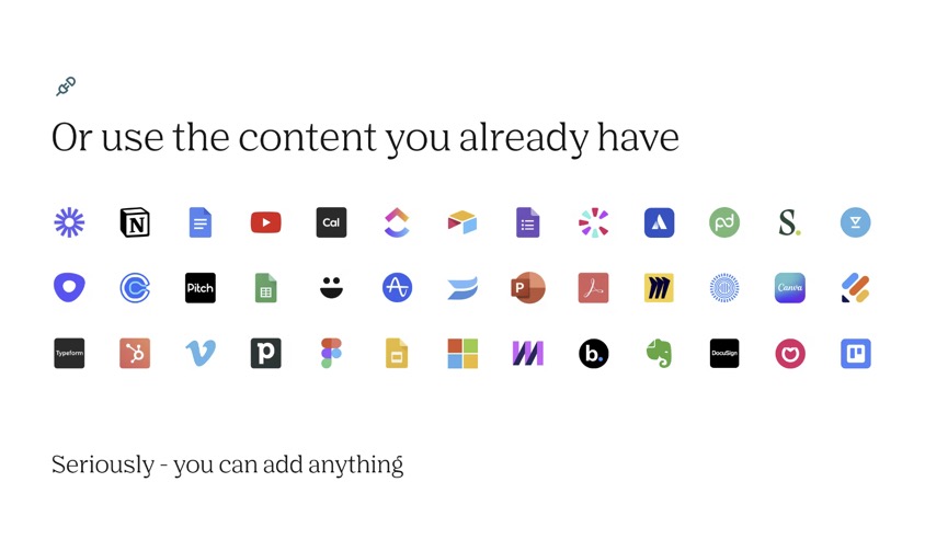 Create slides, videos, and mutual action plans natively + connect your existing content tools