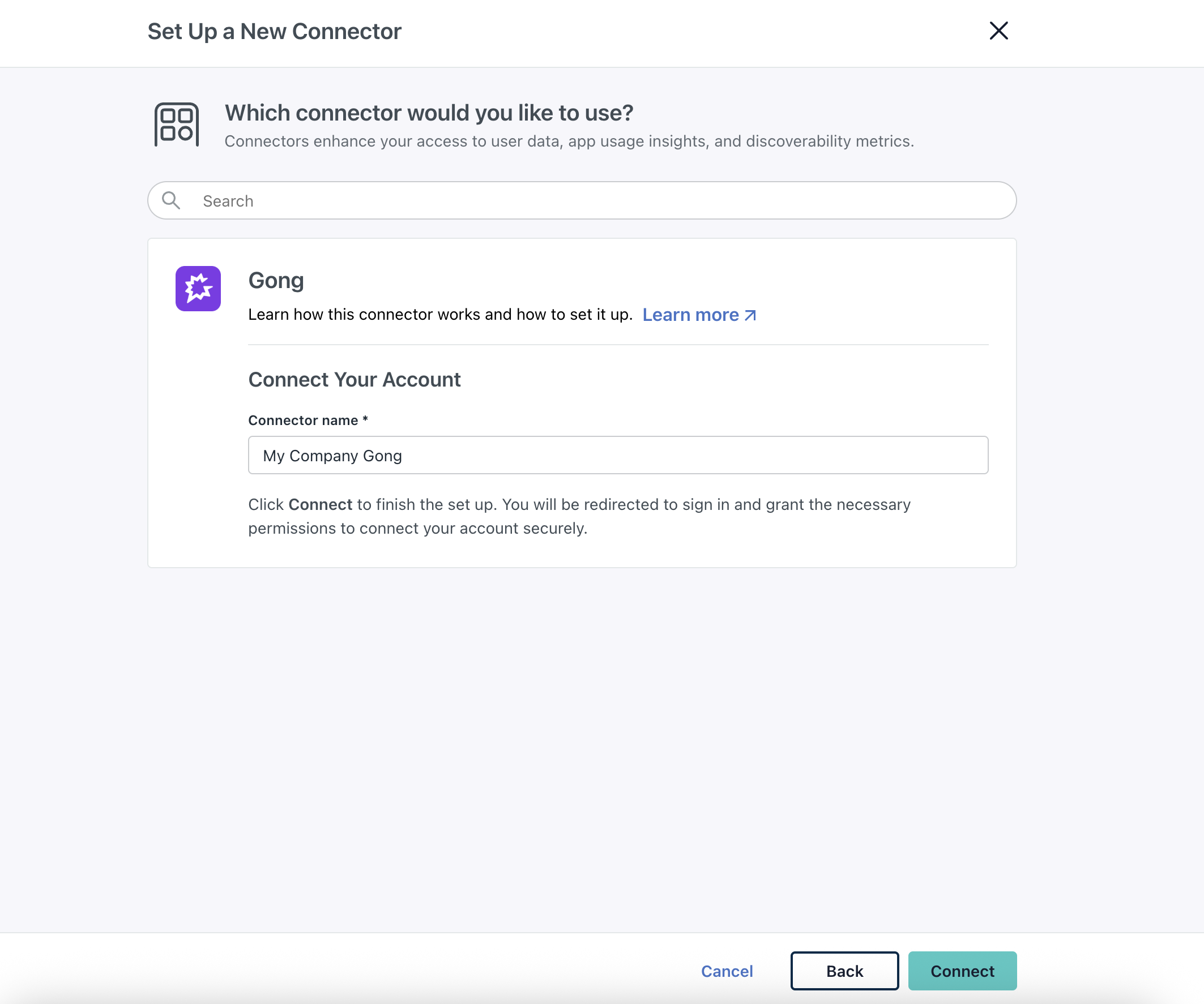 9. You’ll see Gong in the list of Connectors.