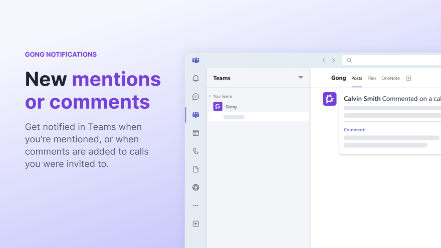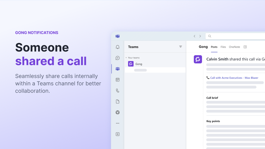 Get real-time insights and alerts about your sales calls from Gong- right in MS Teams.