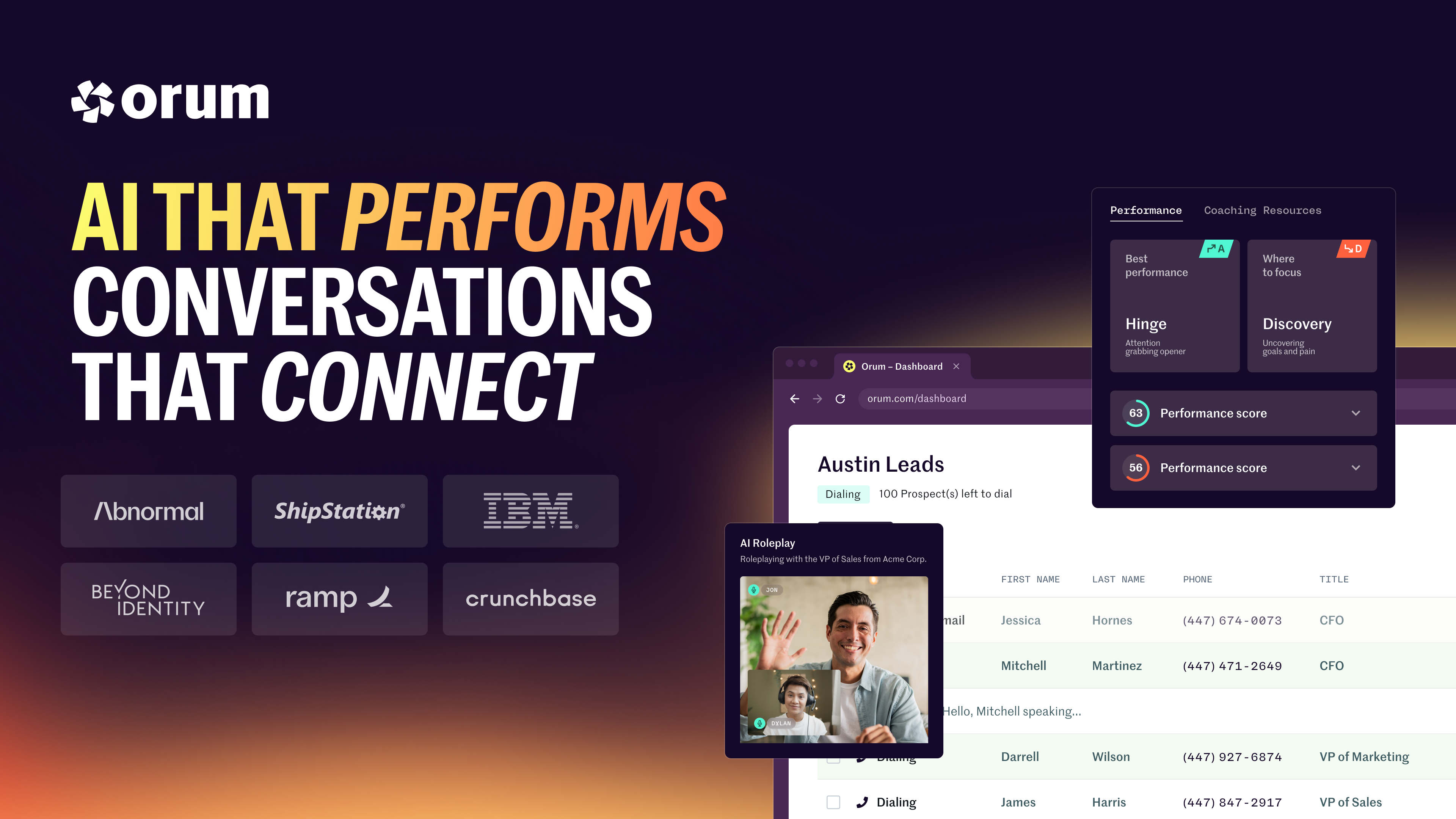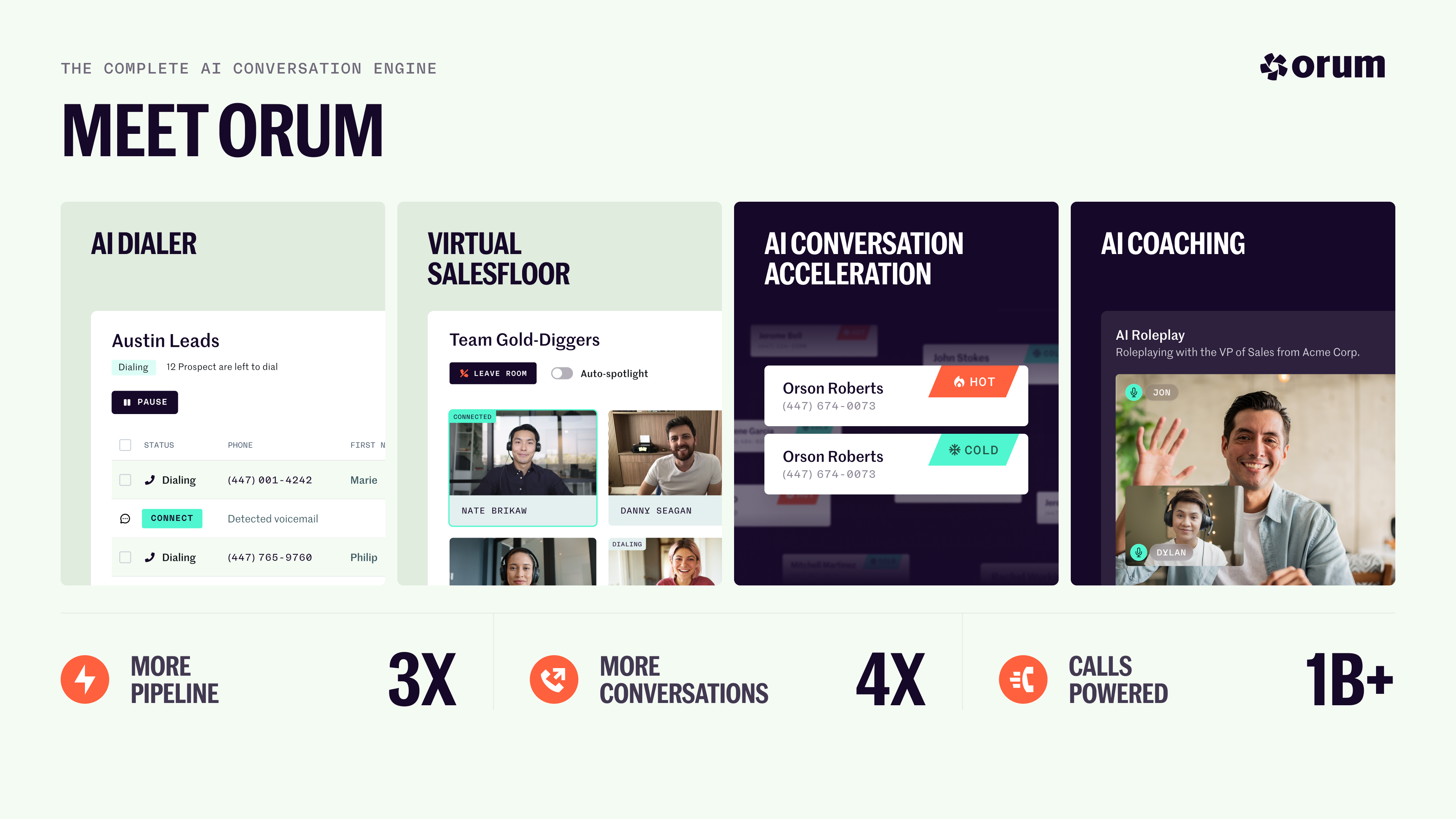 But Orum goes beyond connect rates, with an integrated AI Coaching suite. Complete with instant AI scorecards, scenario-based AI roleplay, and personalized Coaching Portals. So every rep gets the feedback they need to improve, and every manager gets more time back in their day.