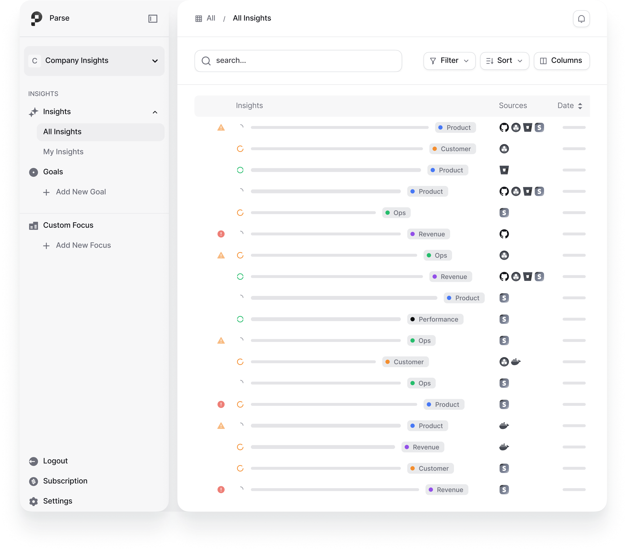 With Parse and Gong together, your revenue team gains access to bulk conversation analytics that span all calls without exposing individual transcripts. Parse's AI engine processes your Gong data at scale to generate comprehensive call summaries, trend analysis, and sentiment insights—all designed for team-level intelligence rather than individual audit. Proactive root cause detection surfaces issues up to three weeks before traditional dashboards show problems, giving your team the competitive advantage to act first.