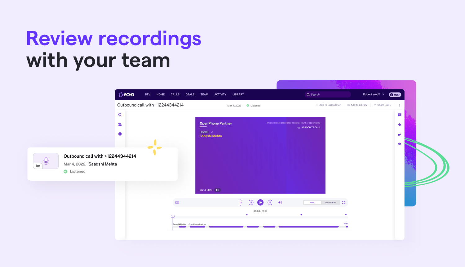 Ingest Quo calls and leverage Gong Conversational Intelligence with this integration.