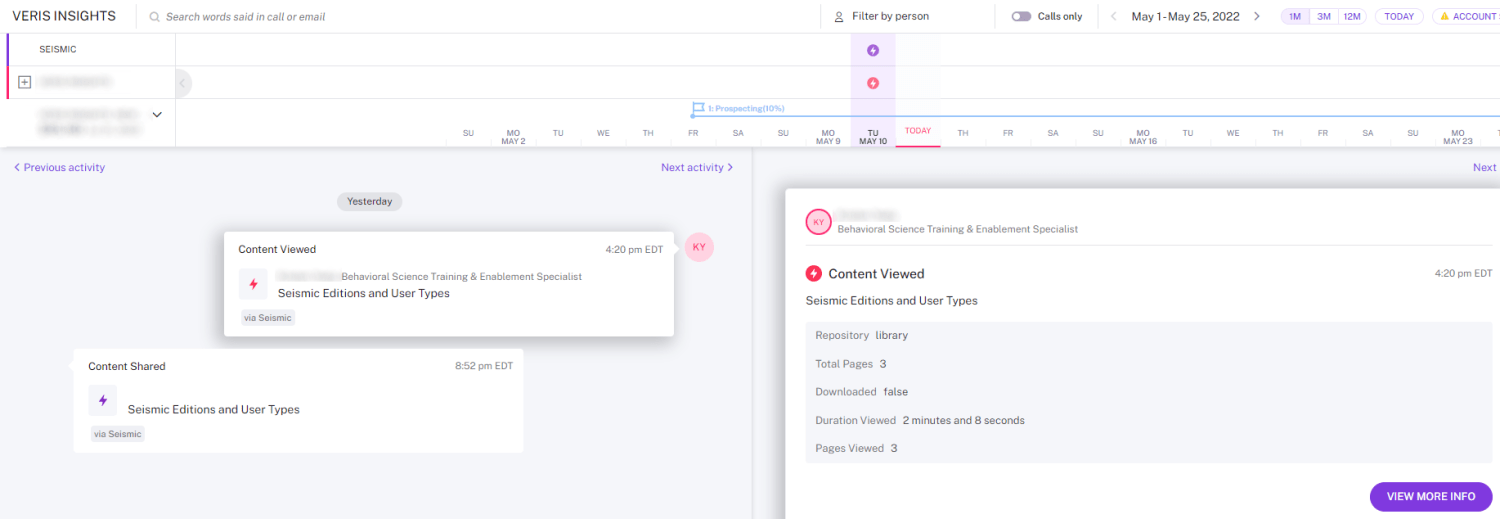See when Seismic content is shared and how buyers engage with it on Gong Activity Timelines.