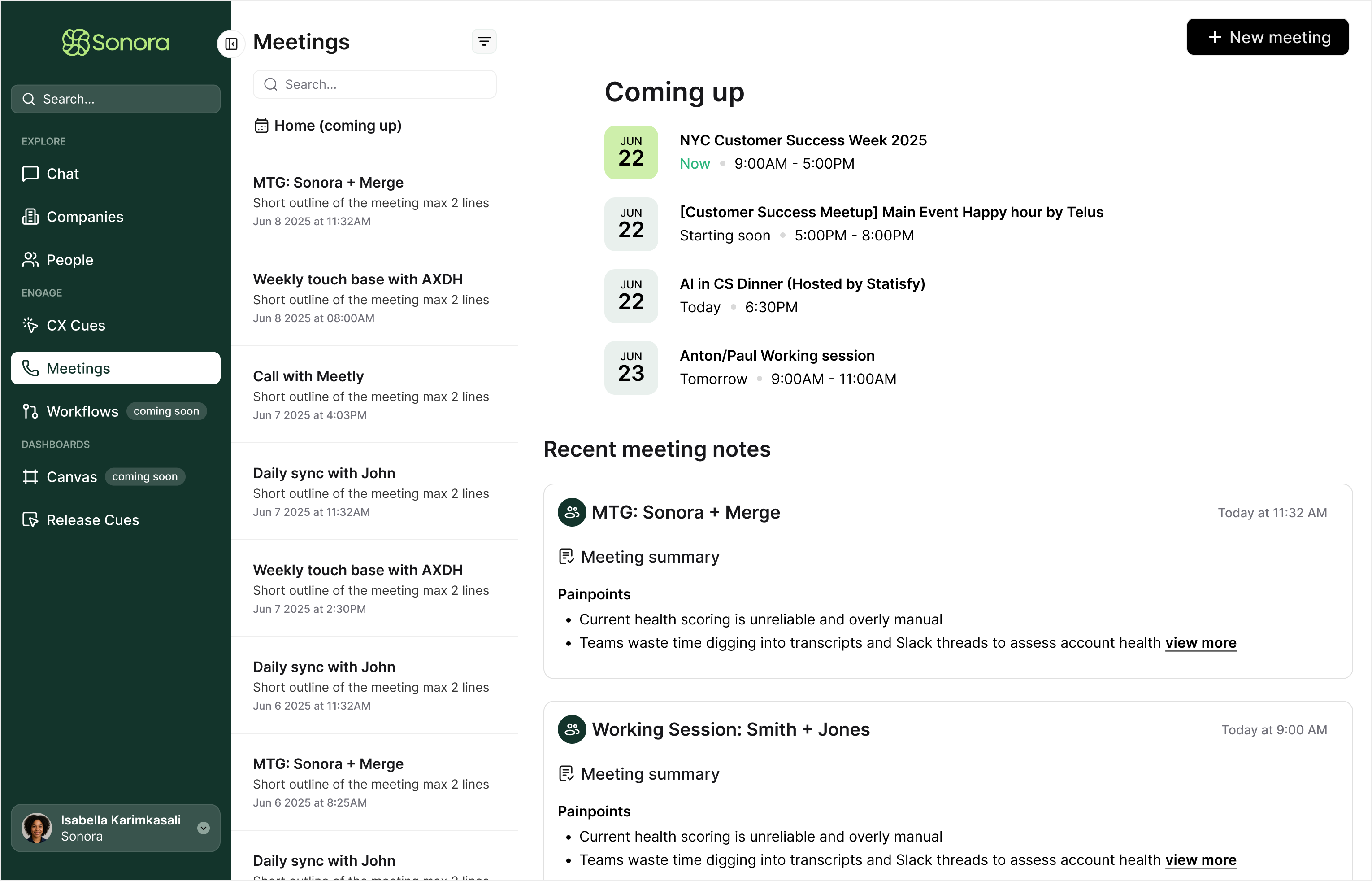 Bring conversation intelligence directly into Sonora to analyze every customer call and surface leading indicators of churn or expansion.