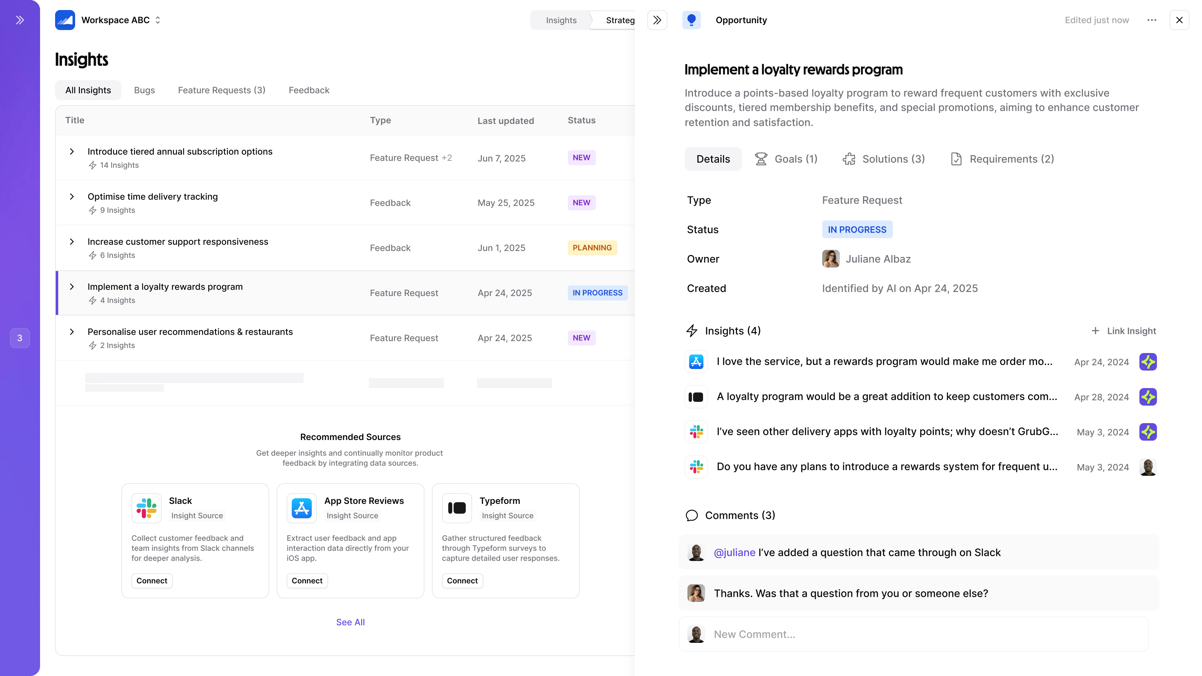 Squad brings together business goals and decision making data from many sources including customer feedback to create alignment and build more strategically.