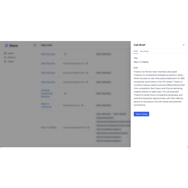 - Automatic Competitor Detection: Instantly identifies when competitors are mentioned in Gong calls