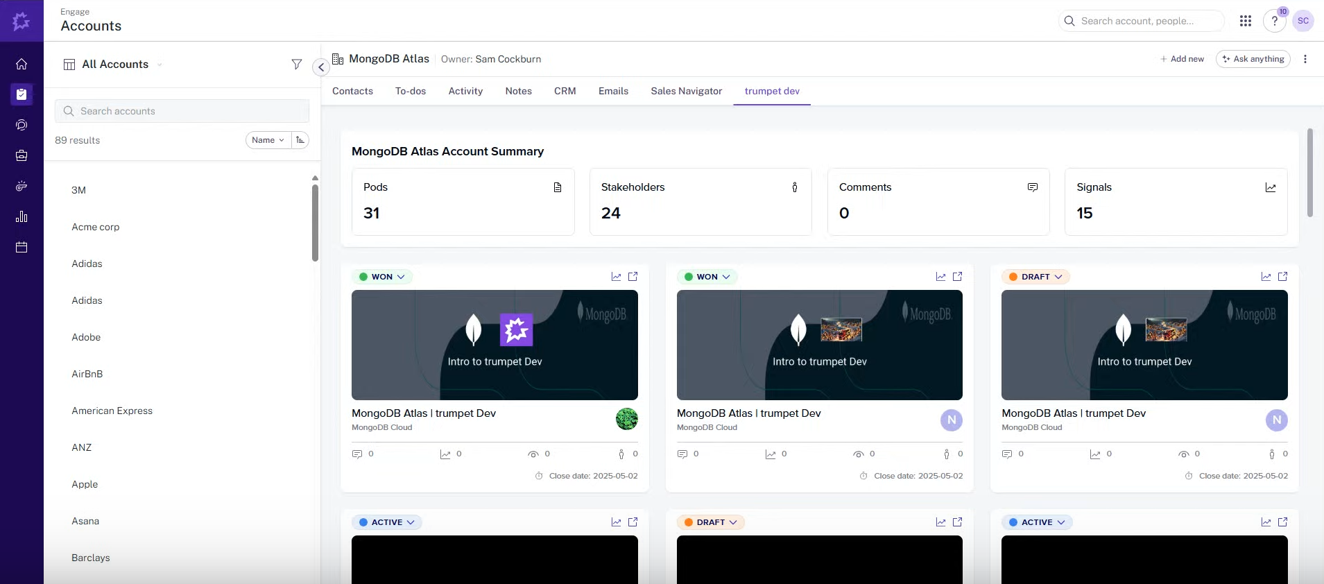 Embed Gong Calls in trumpet Pods to keep all stakeholders up to speed on relevant conversations and improve the centralized buyer journey.