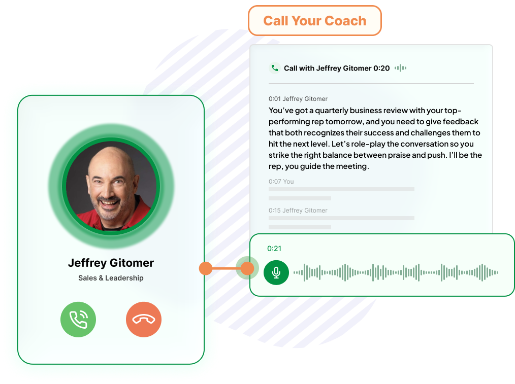 Tap into your AI coach for real-time role-plays, pitch sharpening, or objection handling. You set the pace and your coach will be there whenever you need support.