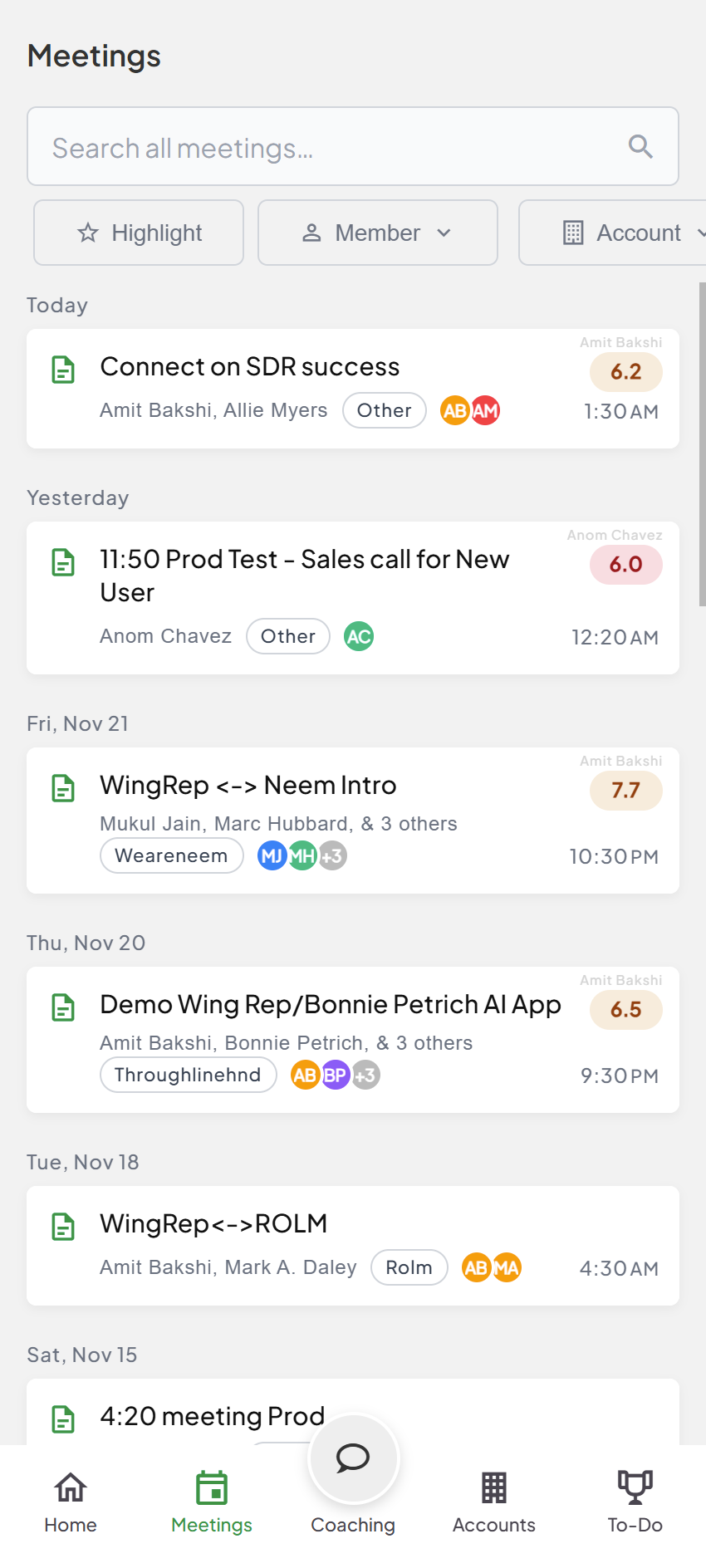 After every meeting, WingRep gives you an instant, personalized breakdown including what you crushed, where you can improve,  how to level up next time, a to-do list, and a follow-up email suggestion. No more waiting for a manager to review your calls or guessing what worked. It’s clear, actionable, and built around your real conversations. It's having a sales coach in your corner  24/7.