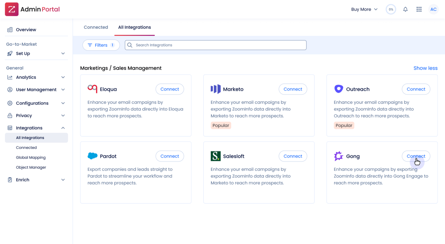 - All ZoomInfo and Gong Engage packages should have access to this integration